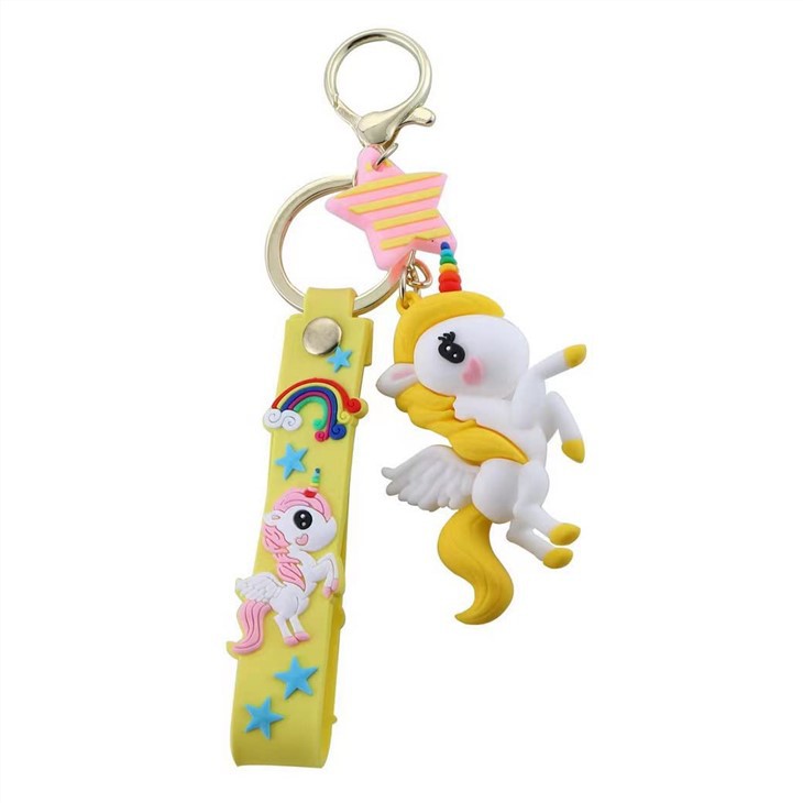 Silikonnøkkelringen er laget av silikonprosess, myk, elastisk og slitesterk; mønsteret er integrert med armbåndet. Ryggsekken nøkkelring for jenter har en viss elastisitet, og den pregede formen til den fargerike enhjørningen er veldig levende og delikat.